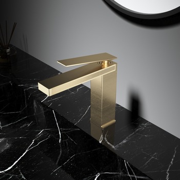 抛光金黄铜单手柄陶瓷阀芯脸盆水龙头浴室梳妆台盆冷热现代简约